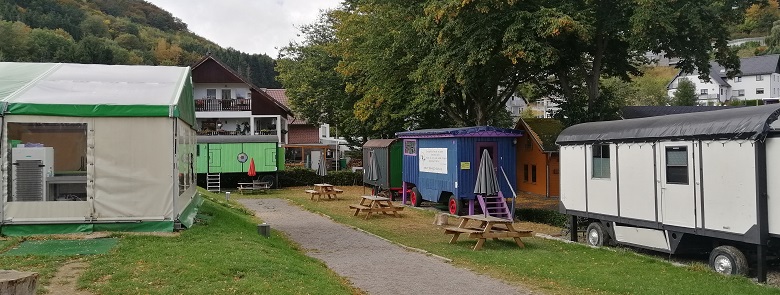 Alle Wägen verfügen über einen mehr oder weniger tadellosen Lebenslauf sowie eine Mini-Küche mit Spüle, Kühlschrank und 2 Herdplatten. Jeder Bauwagen ist einem Motto folgend, mal lustig-verrückt, mal romantisch-liebevoll, ausgebaut und eingerichtet. Unsere Bauwagengäste benutzen die Sanitäranlagen der Zeltwiese.